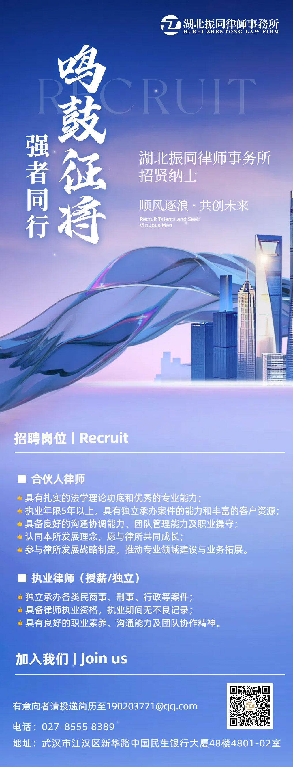 湖北振同律师事务所始终秉持“专业、卓越、合作、共赢”的理念,致力于打造一支高素质、有担当、有温度的专业法律团队。随着业务的持续拓展与品牌影响力的不断提升,现面向社会诚聘合伙人律师与执业律师加入,携手共创更加辉煌的明天。
